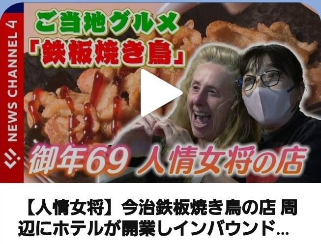 一般社団法人日本やきとり文化振興協会(以下、当協会)の加盟店であり、当協会の副代表理事を務める徳永圭子氏が営む今治市の老舗「今治焼鳥まる屋」の活動が、南海放送のニュース番組「NEWS CH.4」にて詳しく紹介されました。